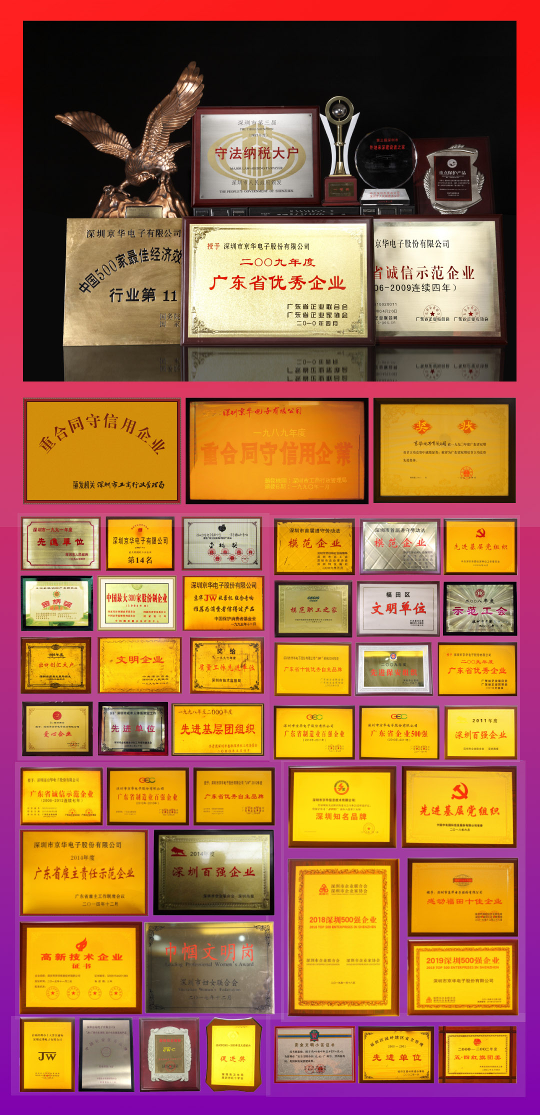 奖牌是运动员的荣誉见证,而企业的“奖牌”,则是其在技术积累、产品实力与行业口碑中的集中体现。作为与深圳特区共同成长的大型国企,京华公司的发展历程堪称“冠军之路”:多次获评“广东省优秀企业”“中心区最具影响力品牌”,连续多年入选“深圳500强企业”,并荣获“深圳知名品牌”等多项称号。